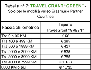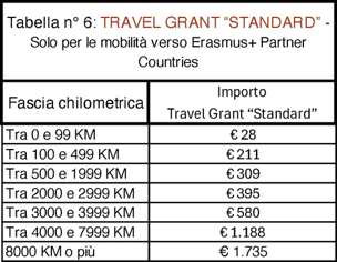 Gli importi del Travel Grant Standard sono indicati nella Tabella n° 6.